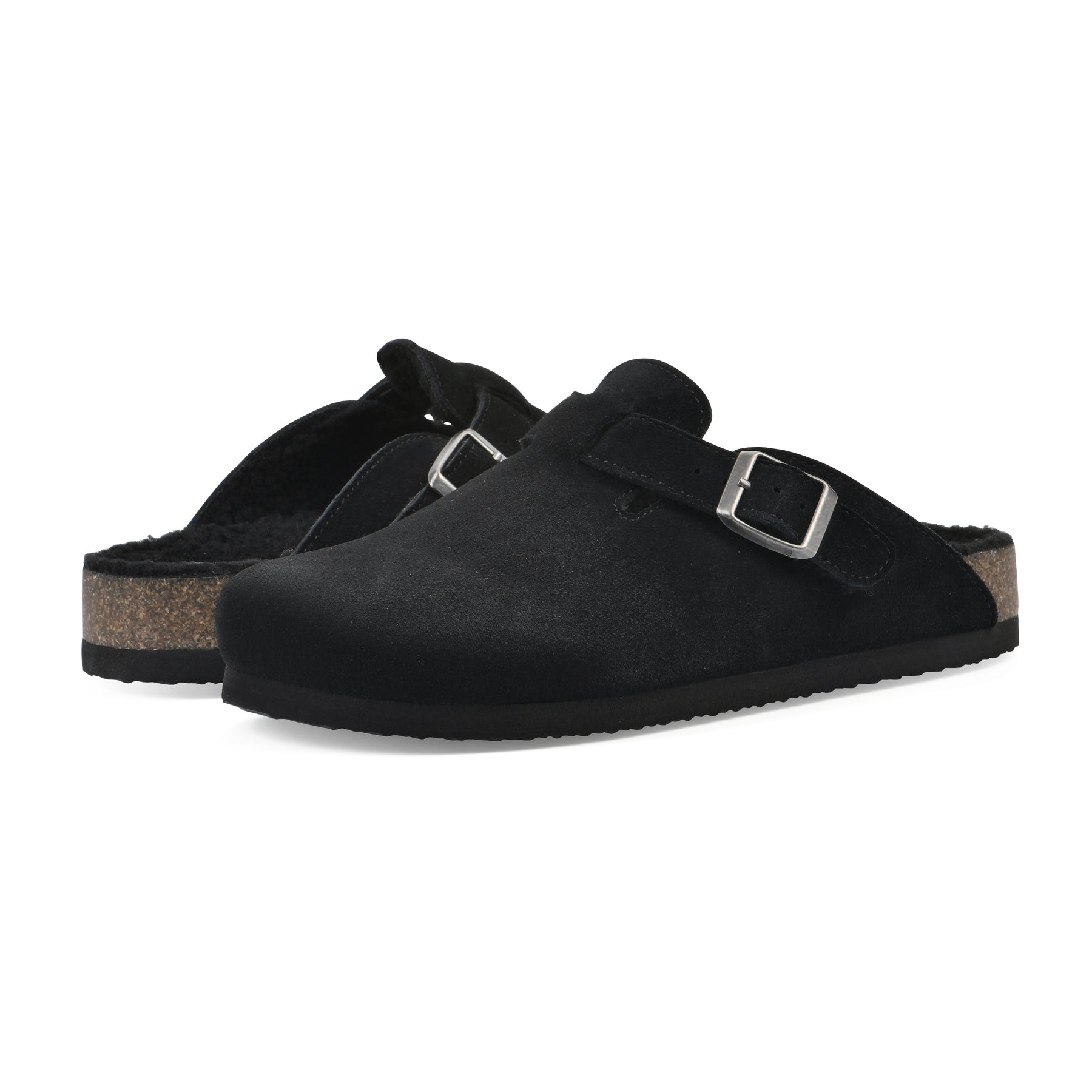 Bari Footbeds Clog - Black Suede Faux Shearling Lined